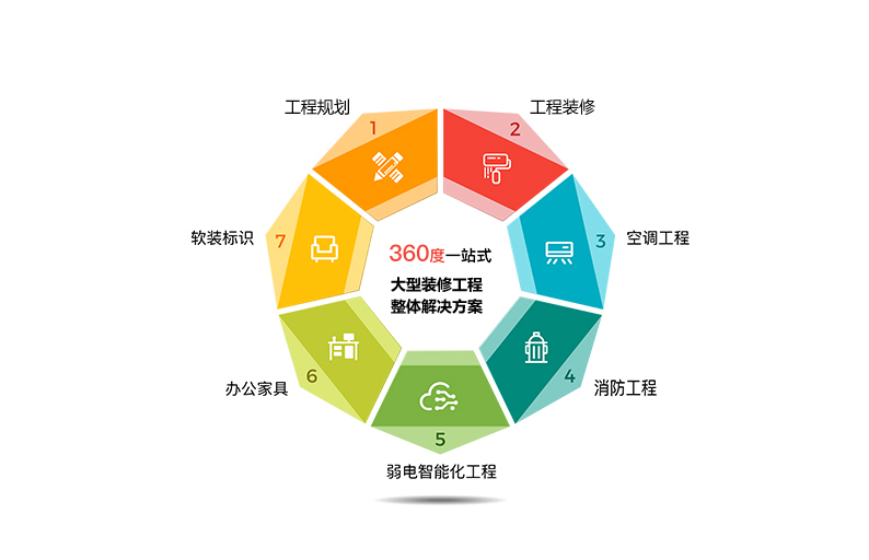 大型裝修工程一站式解決方案,裝修+空調(diào)+消防+水電+弱電,一體化施工,省時(shí)省心省力!